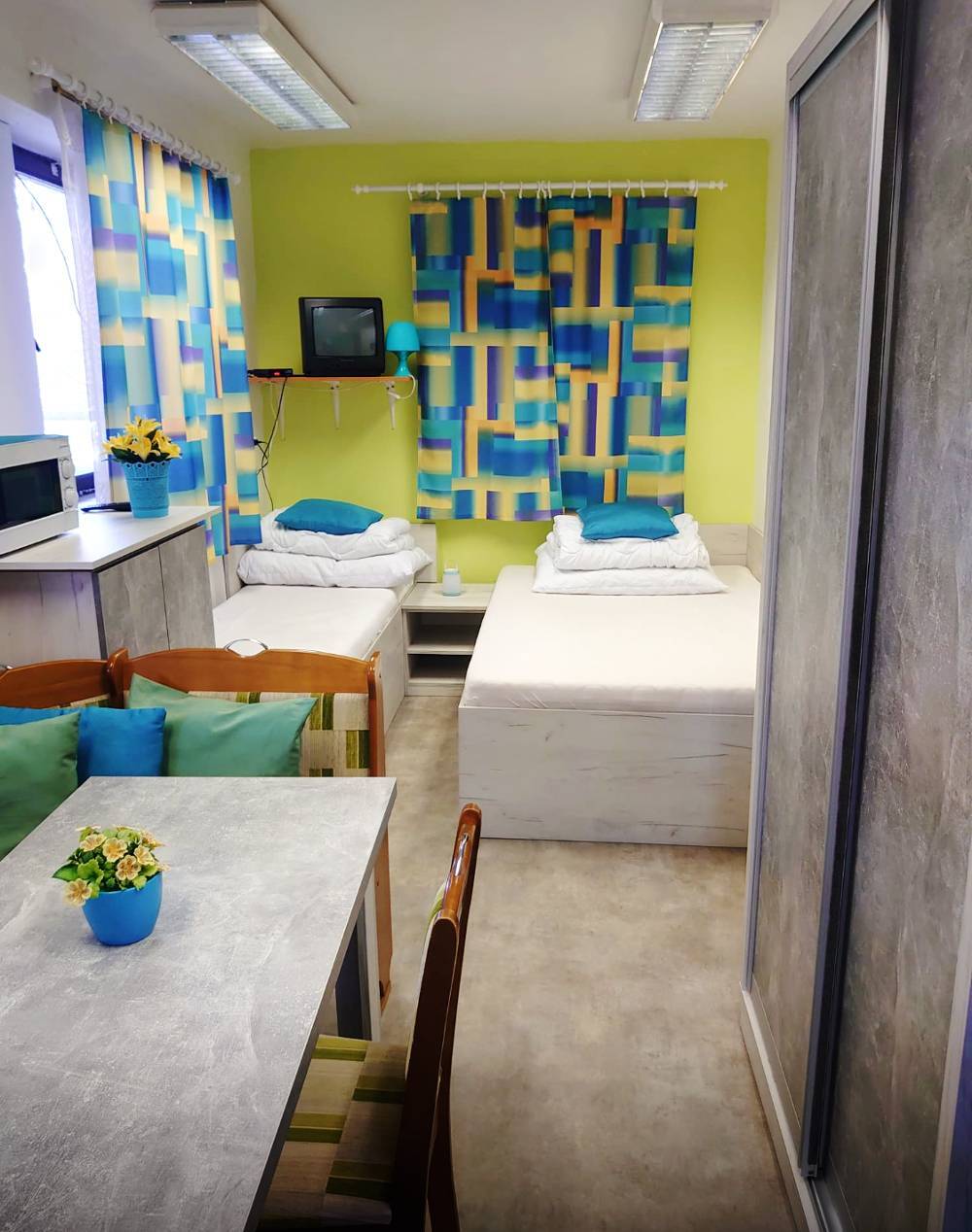 má vlastní vchod (ze zadní strany objektu) disponuje balkonem, ložnicí se dvěma lůžky, obývacím pokojem s dalšími dvěma lůžky a kuchyňkou a vlastní koupelnou s WC.Ceník